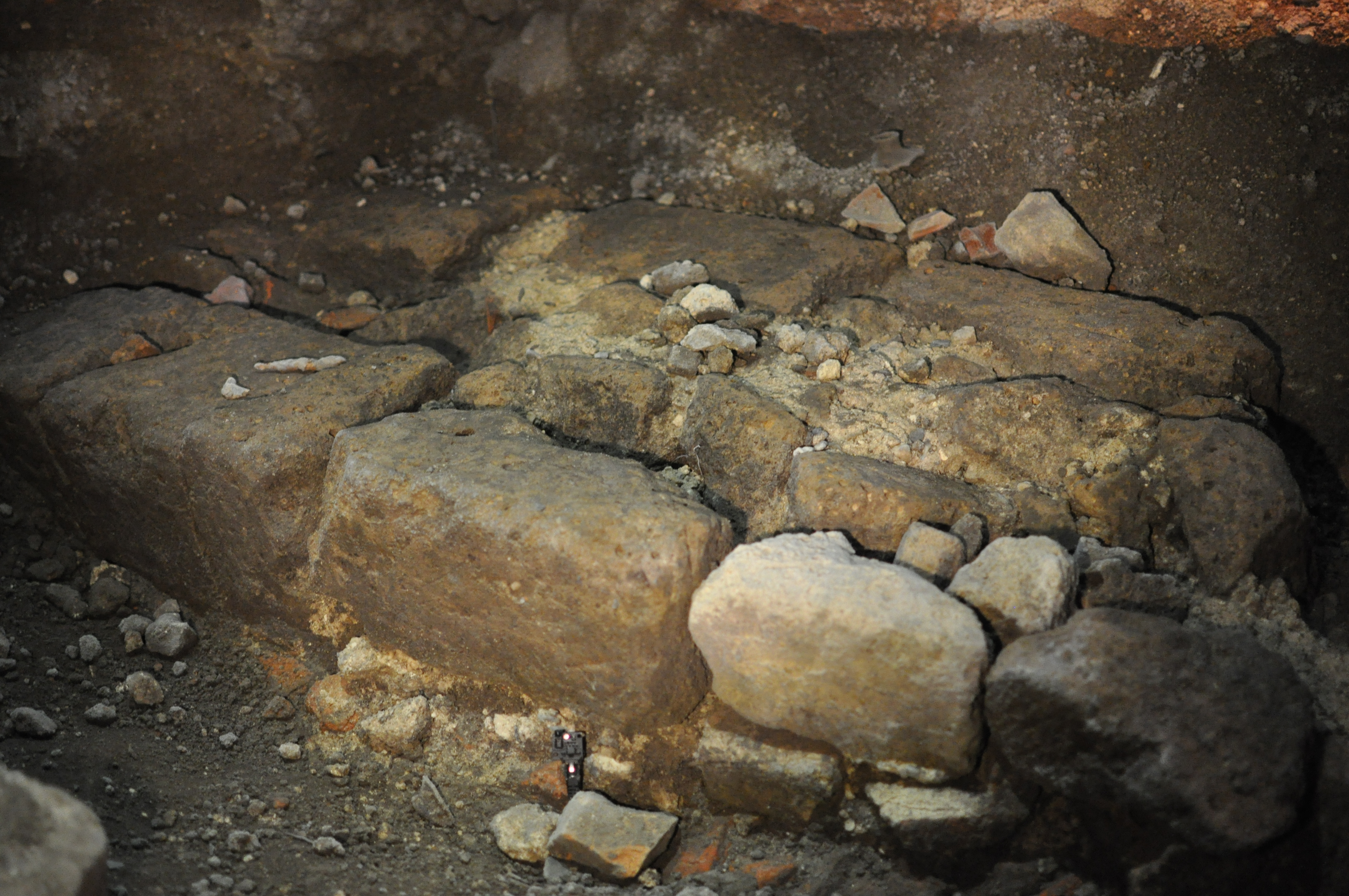 Op het Domplein zijn vanaf 1929 opgravingen verricht naar de resten van het castellum Traiectum, dat hier in de jaren 40 na Chr. werd gebouwd. In de eerste fasen bestond het Romeinse castellum uit een houten constructie met aarden wallen eromheen. Het eerste castellum werd spoedig vervangen door een nieuwe versterking. Gezien de aanwezigheid van een dikke brandlaag is dit castellum waarschijnlijk verwoest tijdens de Bataafse opstand in het jaar 69. Hierop volgde nog een derde en vierde houten castellum. Zoals de andere castella aan de noordelijke Limes werd Traiectum rond 200 na Chr. in tufsteen uitgevoerd. Het tot dusver rechthoekige castellum werd toen tevens naar het noorden uitgebreid, waardoor het geheel een meer vierkant grondplan kreeg. Ook poorten en hoektorens werden in steen opgetrokken. In het castellum Traiectum waren zo’n 500 soldaten gelegerd. Het fort werd aan het eind van de 3e eeuw verlaten, maar op de locatie van het castellum verrees in de 7e eeuw de eerste voorloper van de huidige Dom. 1 2 3 4 5 67